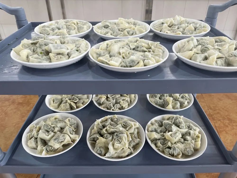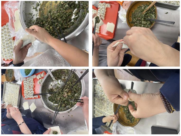 大家洗干凈手圍站在廚房,擼起袖子大展身手。攤皮、放餡、捏形狀、成形,動作嫻熟的小伙伴一氣呵成。