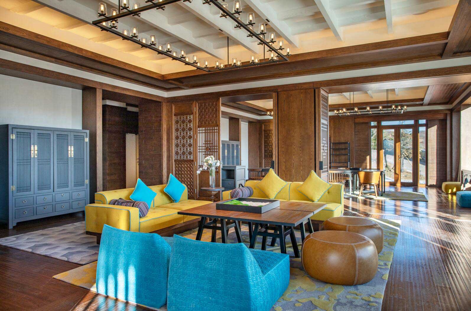 酒店設(shè)計由備受贊譽的泰國設(shè)計事務(wù)所P49 Deesign操刀,以尋找夢想中的“香巴拉”“月光城”為靈感素材,用藏式傳統(tǒng)風格進行現(xiàn)代簡約素凈演繹,為賓客呈現(xiàn)高原藏式鄰里文化。