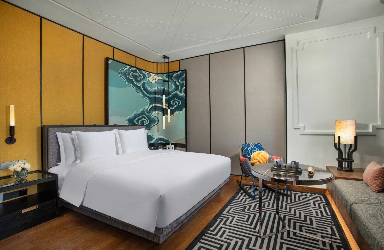 房間設(shè)計從藏地文化中汲取靈感,寫意回溯香格里拉鄰間故事,打造兼具民族風韻和現(xiàn)代舒適的下榻空間,點綴精挑細選的工藝品及特色壁畫,房間的角落和細節(jié)處處可見充滿本地風情的鄰間文化。開窗見景,入室賞藝,高品質(zhì)客房設(shè)施營造了引人入勝的旅居氛圍。