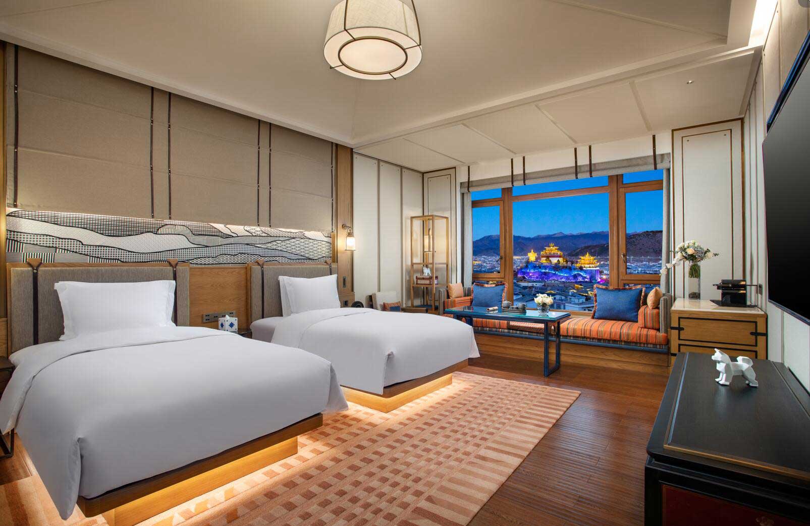 酒店共設(shè)99間“月光城”主題客房和3間自帶超大露臺的套房,精巧融合民族文化與國際品牌需要的舒適設(shè)計,客房內(nèi)外藏地藝術(shù)與現(xiàn)代精雕細琢的工藝品、壁畫點綴其間,各處細節(jié)均體現(xiàn)了英迪格品牌所倡導(dǎo)的“鄰里文化”。各層不同客房設(shè)置的入戶庭院、露臺、陽臺,使人獨享私人靜謐空間。