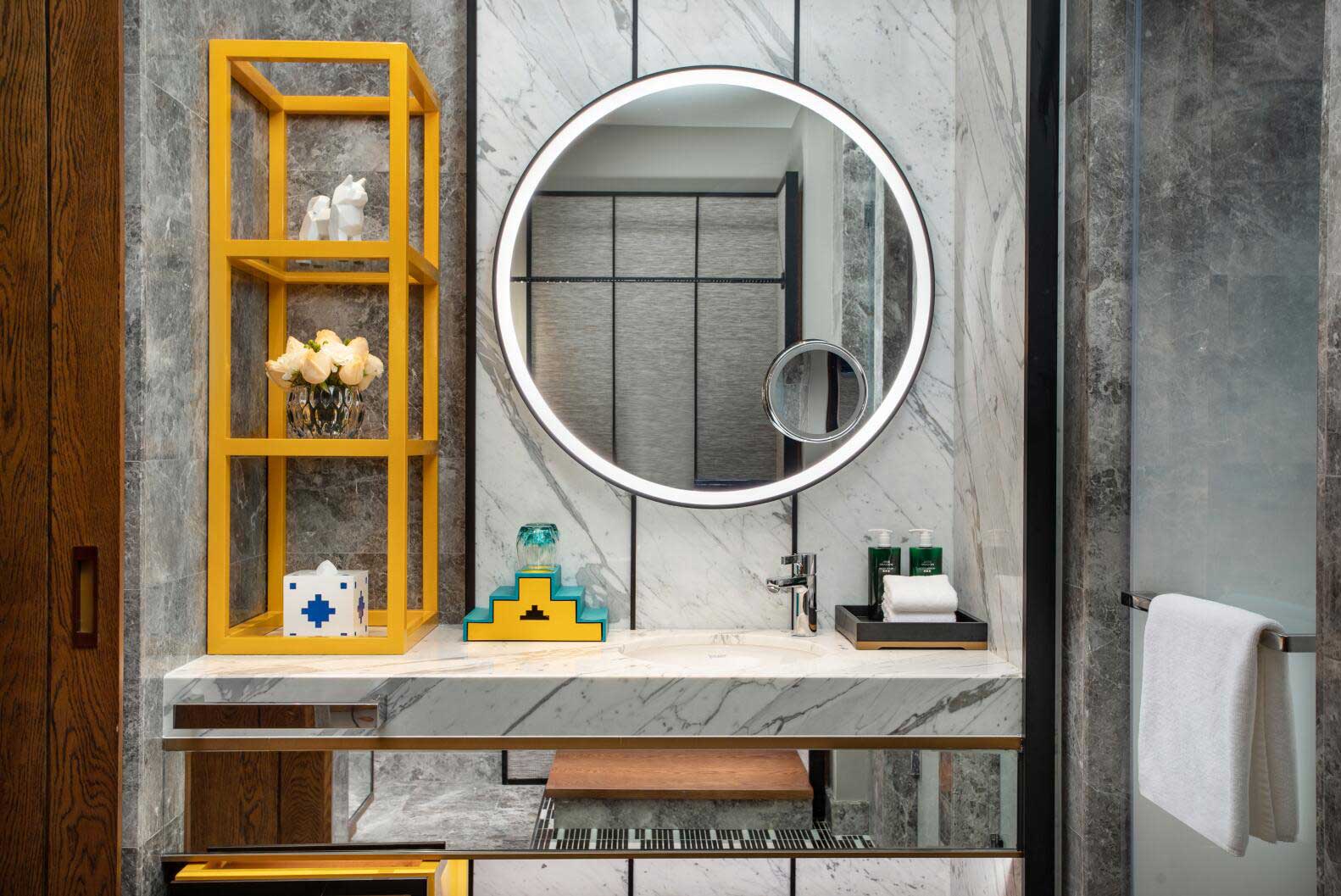 酒店大堂大氣而不失現(xiàn)代藝術(shù)美感,走進其間,隨處可見極具當?shù)仫L格的藝術(shù)品與裝飾,隱約可見香巴拉的縮影。頂部設(shè)計對光影的巧妙運用可謂巧奪天工,自然光線透過鏤空屋頂灑落下來,與地面交相輝映,且在高原寒冷地區(qū)用特色小景、綠植裝點,讓人如同置身熱帶溫室,光影交錯間,營造出“眼有星河,心藏日月”的詩意畫面。