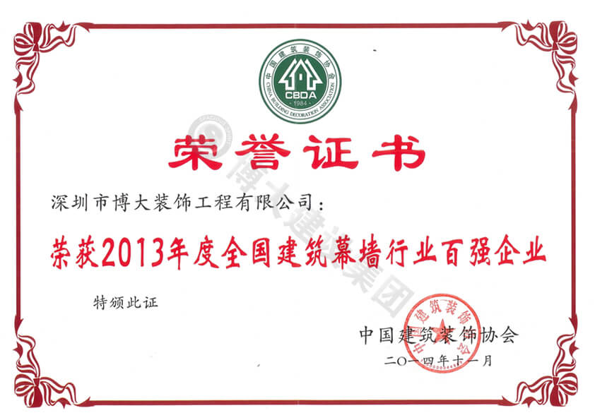 2013年度中國(guó)建筑幕墻行業(yè)百?gòu)?qiáng)