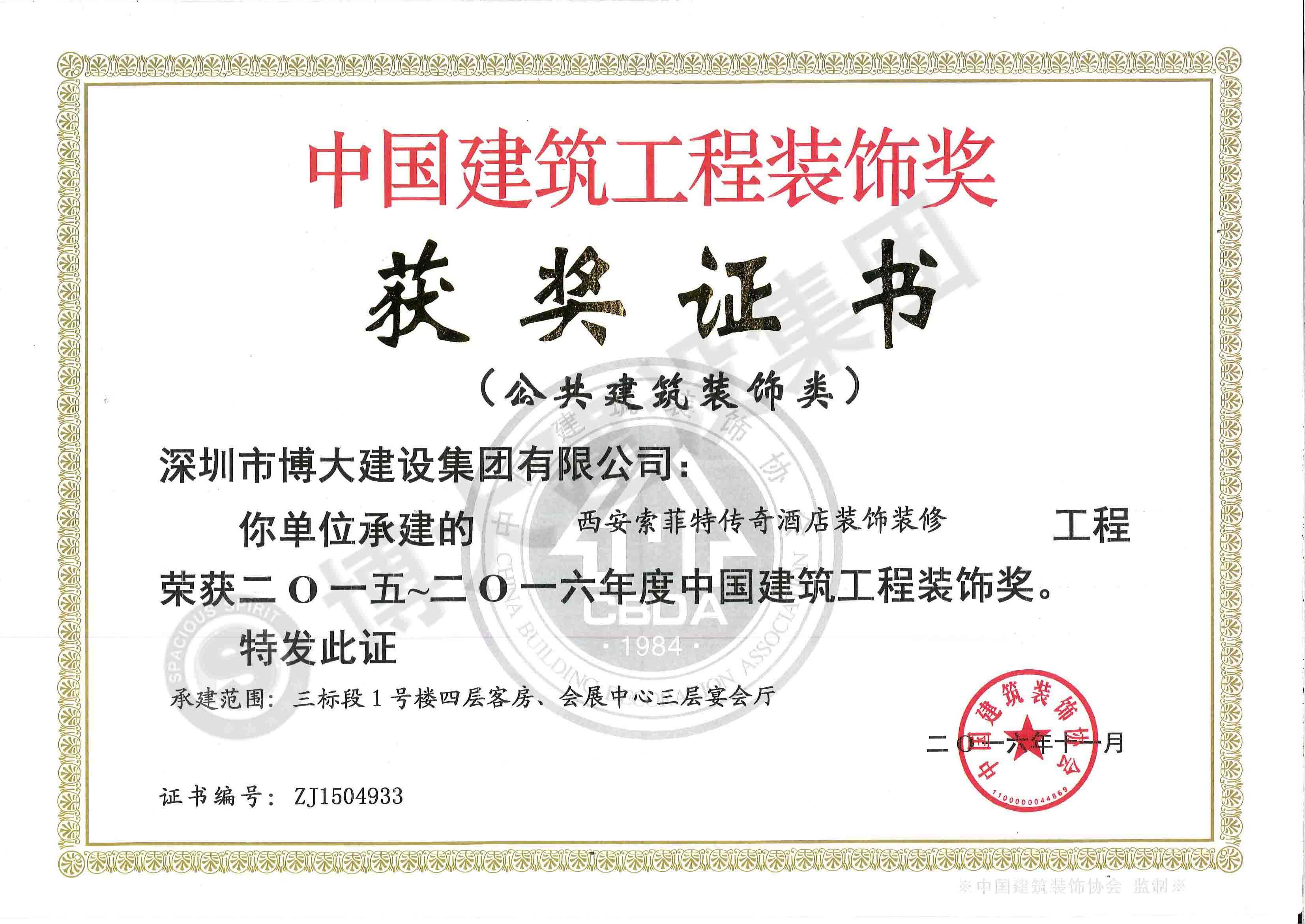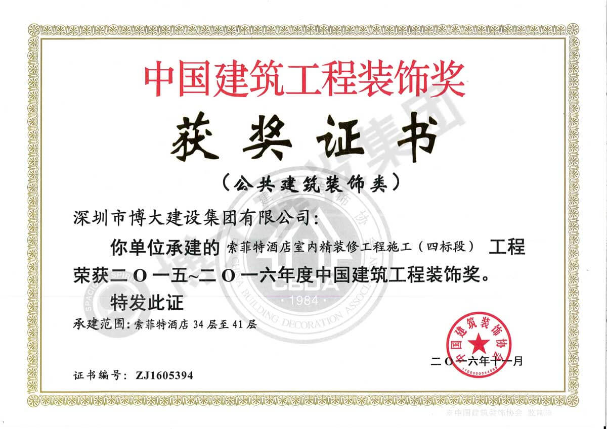 中國建筑工程裝飾獎(索菲特酒店室內(nèi)精裝修工程-裝飾)