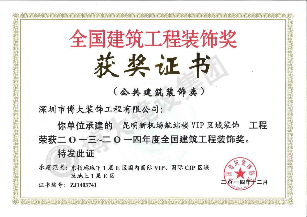 中國建筑工程裝飾獎(昆明新機(jī)場航站樓VIP-裝飾)