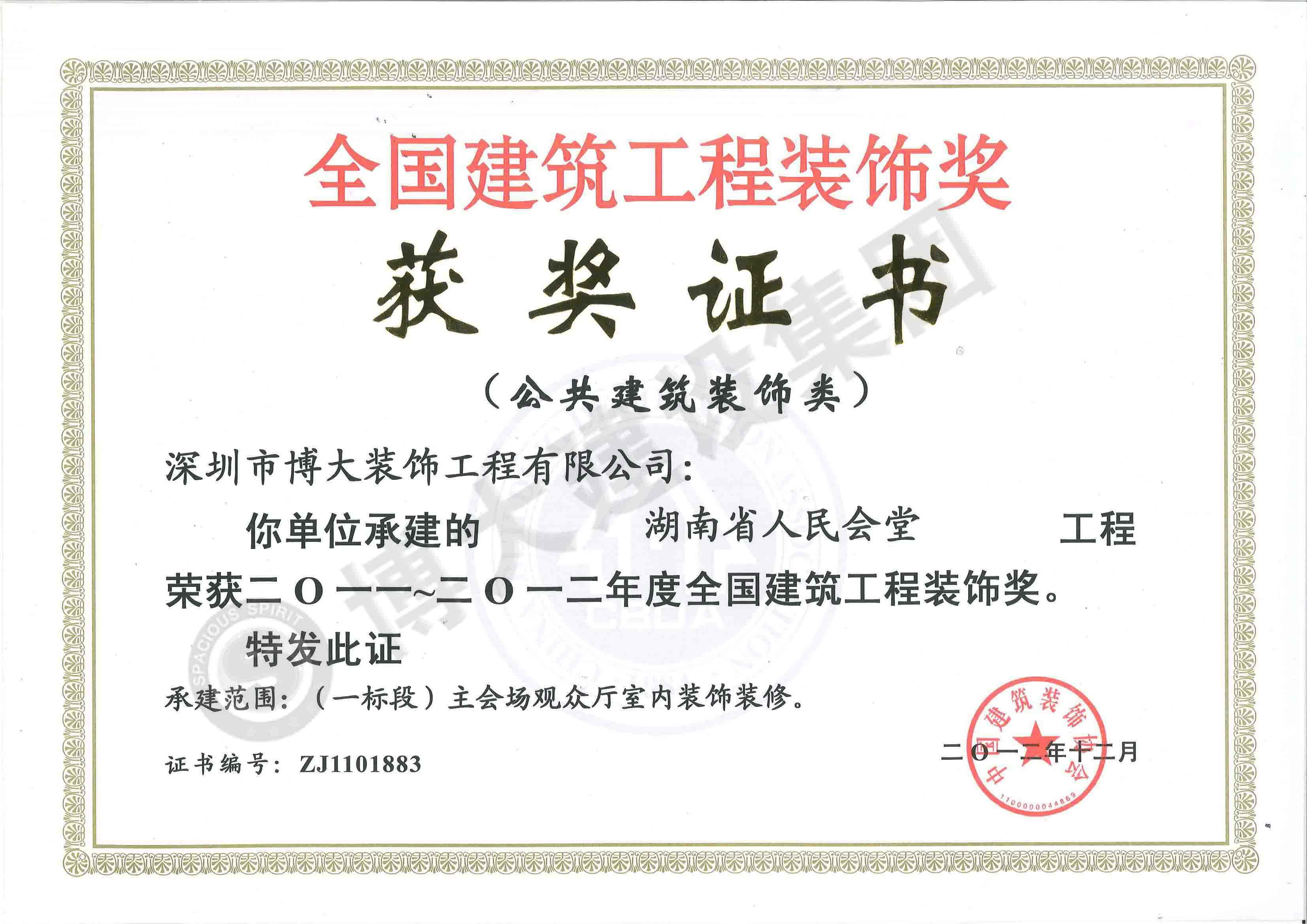 中國建筑工程裝飾獎(湖南人民會堂-裝飾)