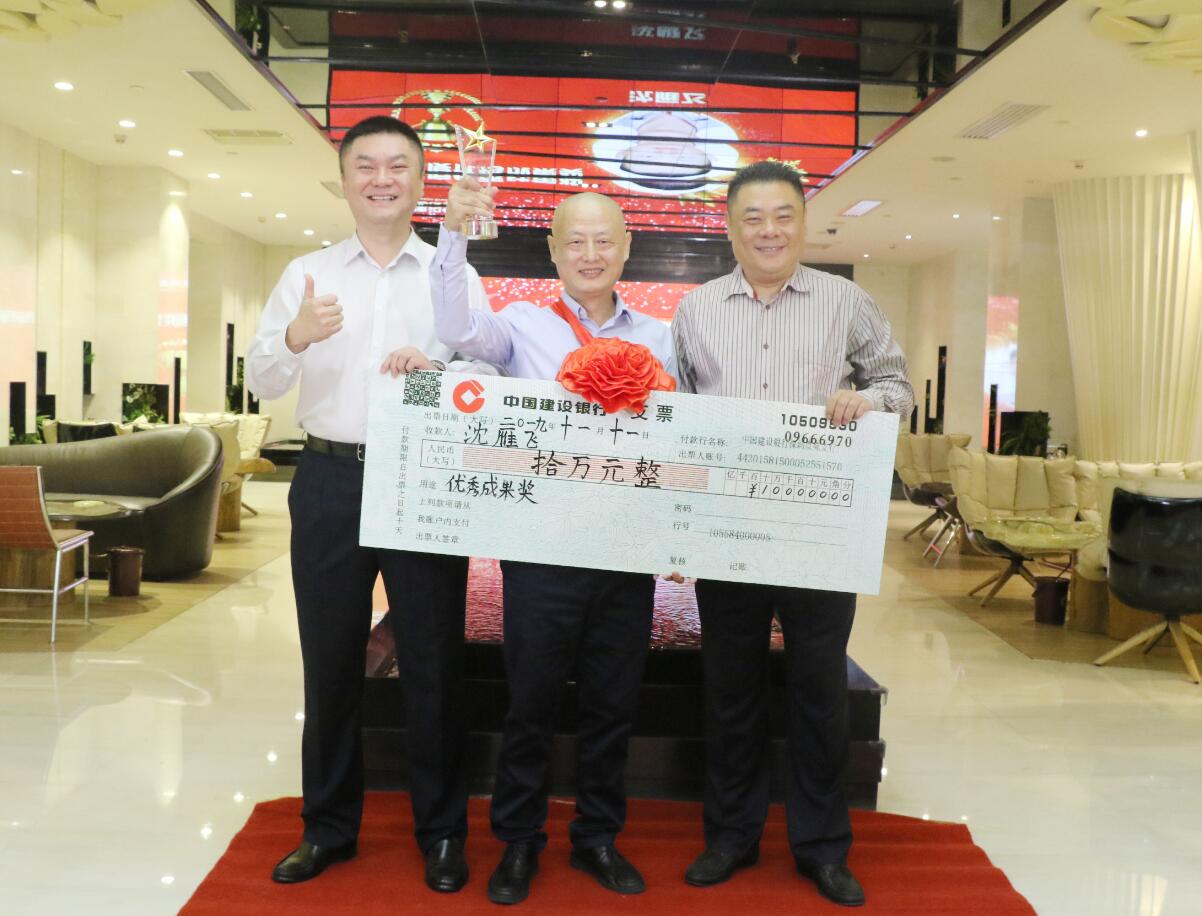 優秀成果獎獲獎者沈雁飛、羅青正、江東與董事長、總裁合影