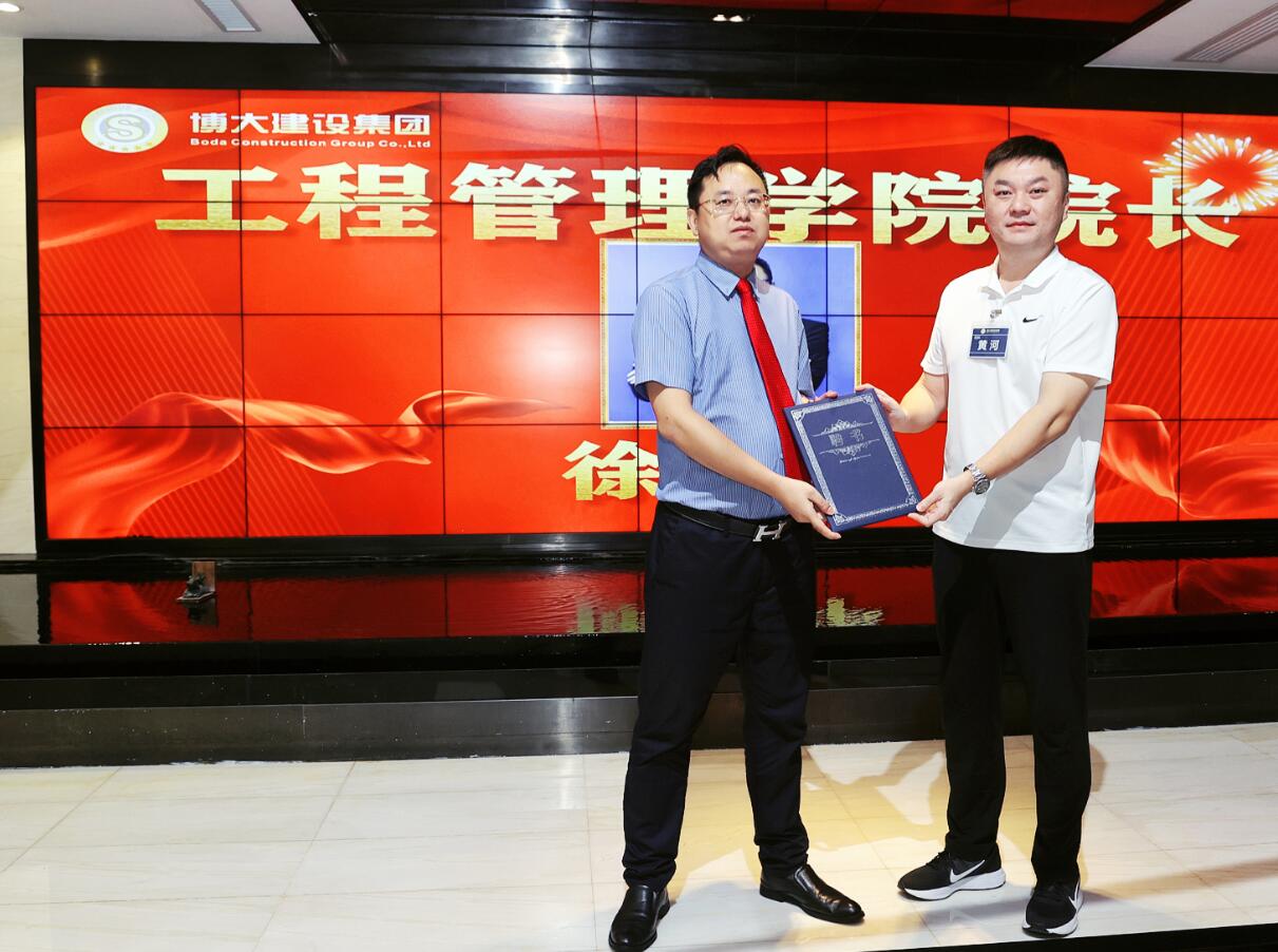 14日上午,培訓(xùn)正式開始前,博大鐵軍大學(xué)隆重舉行工程管理學(xué)院、研發(fā)技術(shù)學(xué)院兩個(gè)院長的任命儀式。任命集團(tuán)高級副總裁、裝飾機(jī)電中心總經(jīng)理徐朝華為工程管理學(xué)院院長,任命幕墻中心總工程師李立強(qiáng)為研發(fā)技術(shù)學(xué)院院長。