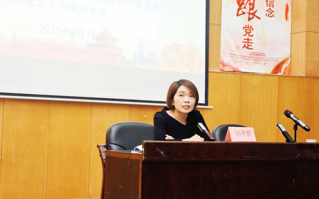 行政總裁劉子蓮結合自身的成長經歷,從五個層面講解如何選擇就業的行業和公司,幫助即將走向社會的同學們建立信心、提升就業篩選能力。南湖學院黨委書記柳周峰、副院長梁亭、機電系黨總支書記喻立平、工程系黨總支書記仇虎子、就業辦主任吳紅玲等校領導熱情接待,并出席分享會。
