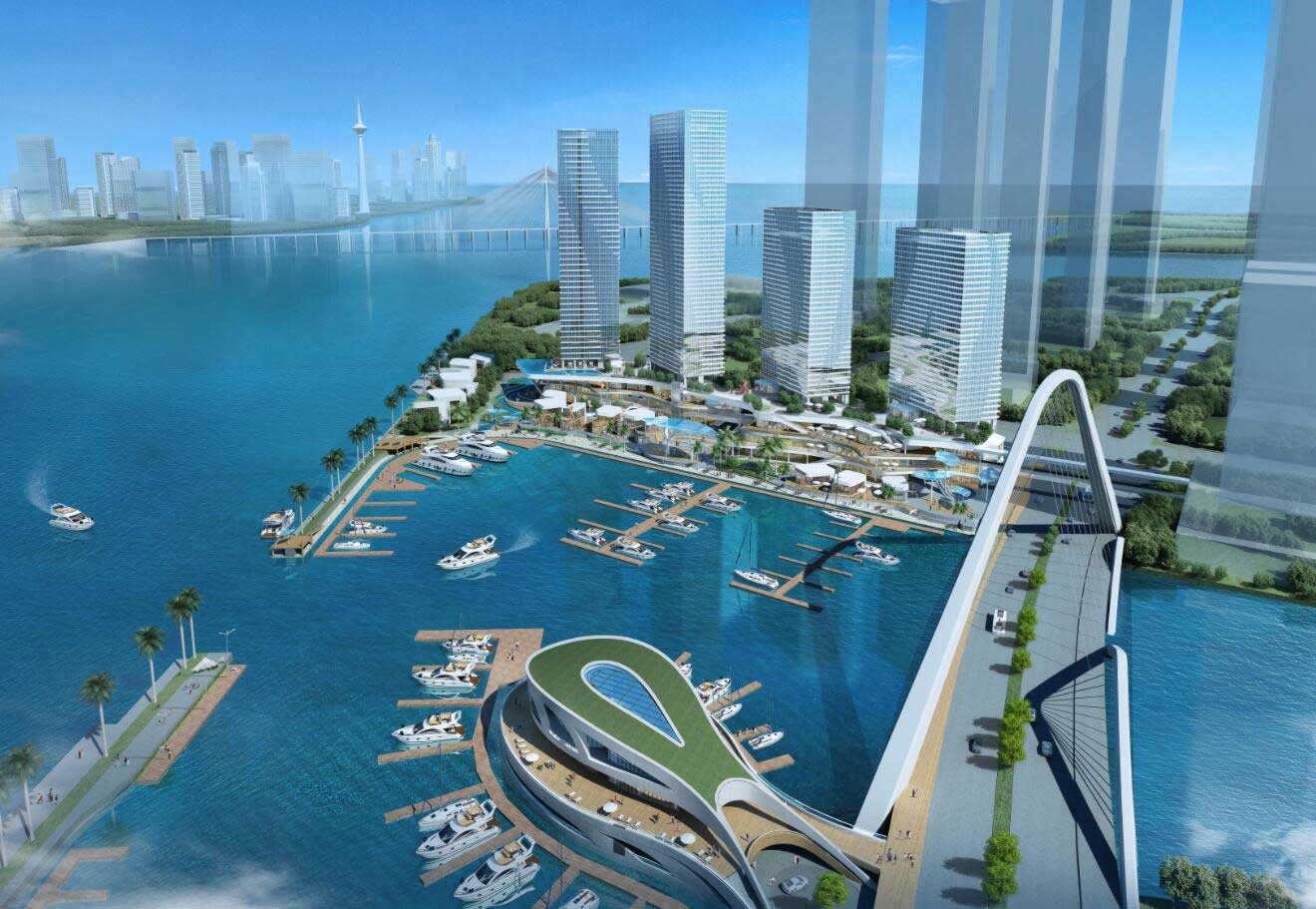 項目位于珠海市橫琴金融島內,占地面積5萬余㎡,總建筑面積近20萬㎡,包含7萬㎡碼頭水域、高端住宅、商業、辦公及酒店等業態,是橫琴自貿試驗區的重點產業項目和粵港澳游艇自由行的基礎工程,也是廣東自貿試驗區推進粵港澳深度合作,建設國際休閑旅游基地的重要一環。