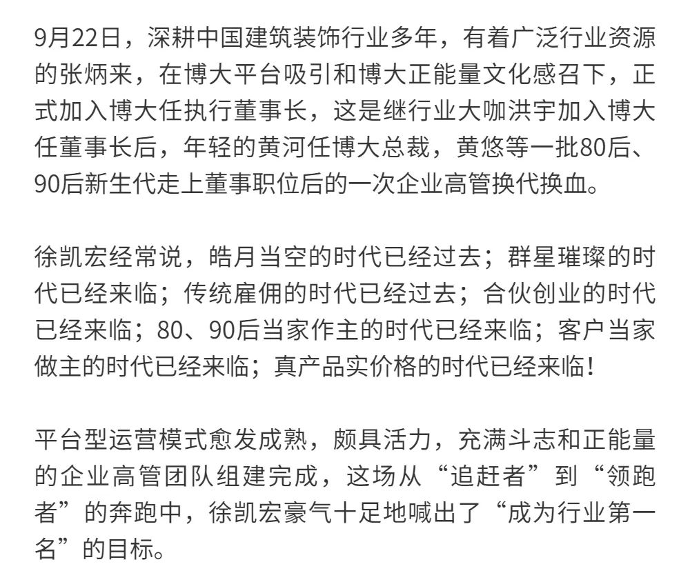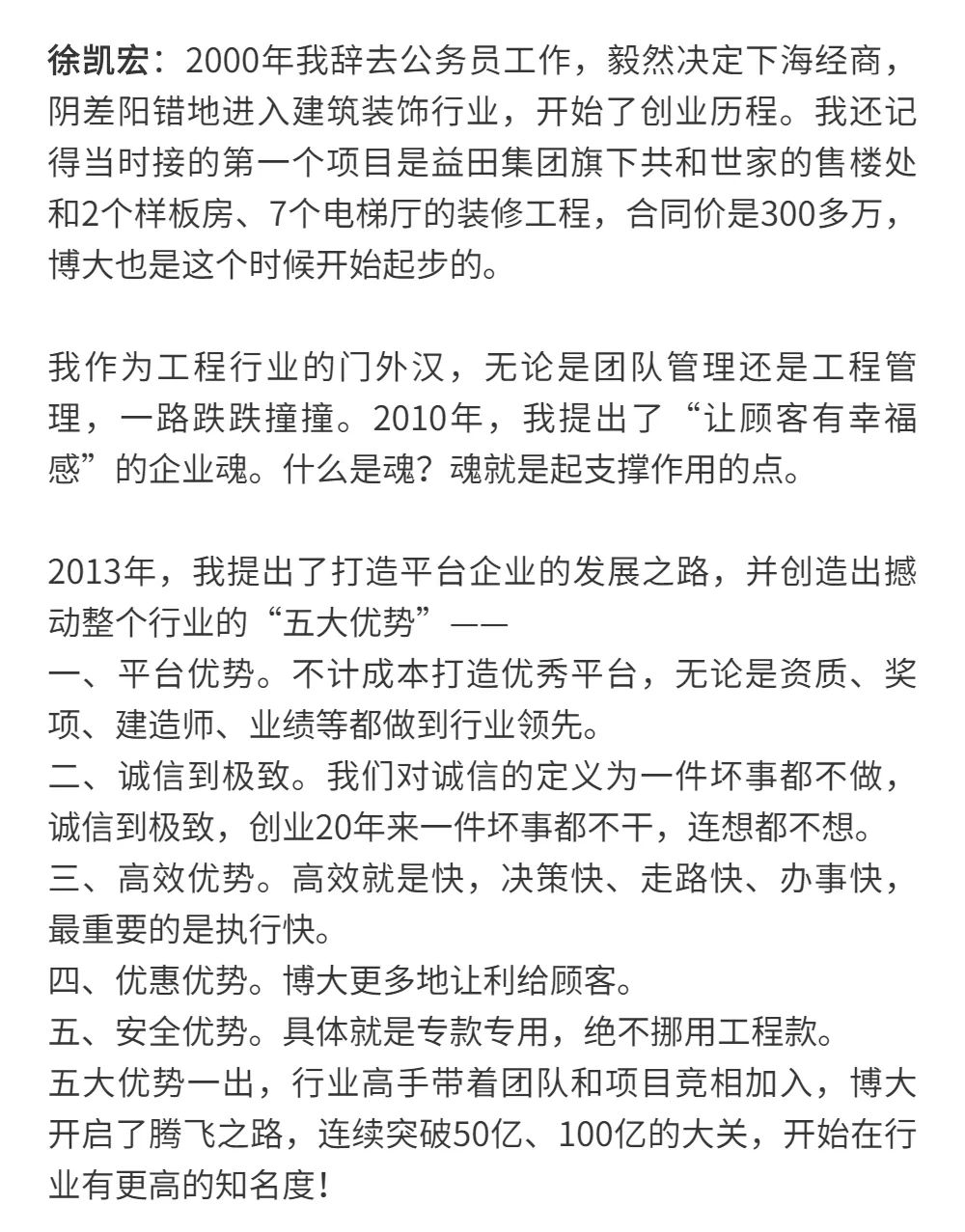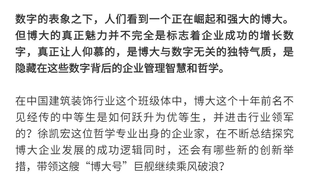 恰逢博大建設(shè)集團(tuán)再次躍升至中國(guó)建筑裝飾行業(yè)百?gòu)?qiáng)第3名的喜訊,現(xiàn)把兩篇深度好文再次轉(zhuǎn)發(fā),以饗讀者。